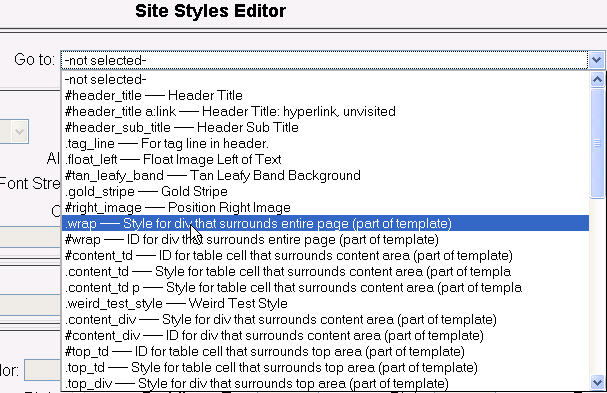 To change the #wrap attributes, select the #wrap class from the Go To list: